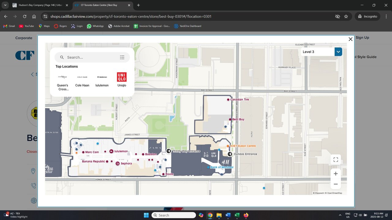 Even now when you look at the map on the CF Eaton Centre website, it shows Best Buy and Canadian Tire being completely separate from the mall.