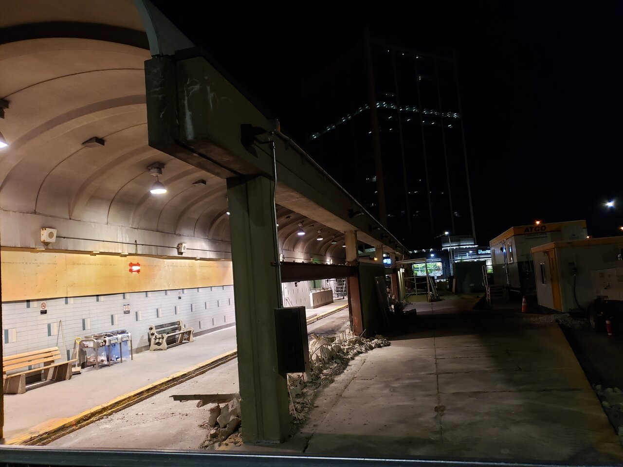 they put up new fences in the last week or so and moved in some sort of construction trailer but no indication of what they're doing. The bus bay is supossed to be moving to the north east part of the parking lot, would think they would buid that before removing the old one.When is this scheduled to be levelled?