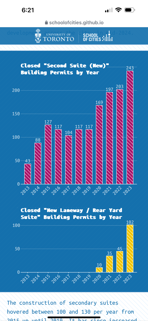 UofT has released great maps and stats of adu/laneway suite builds over the last years. Yellow are laneway while red are garden. View attachment 584694View attachment 584693