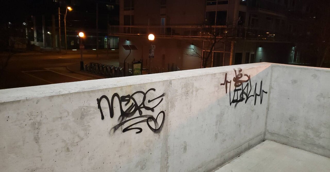 They should have put metal halfbulbs on the stairwell walls, that would prevent the tagging. Or have them pre-tagged by artists in the community.