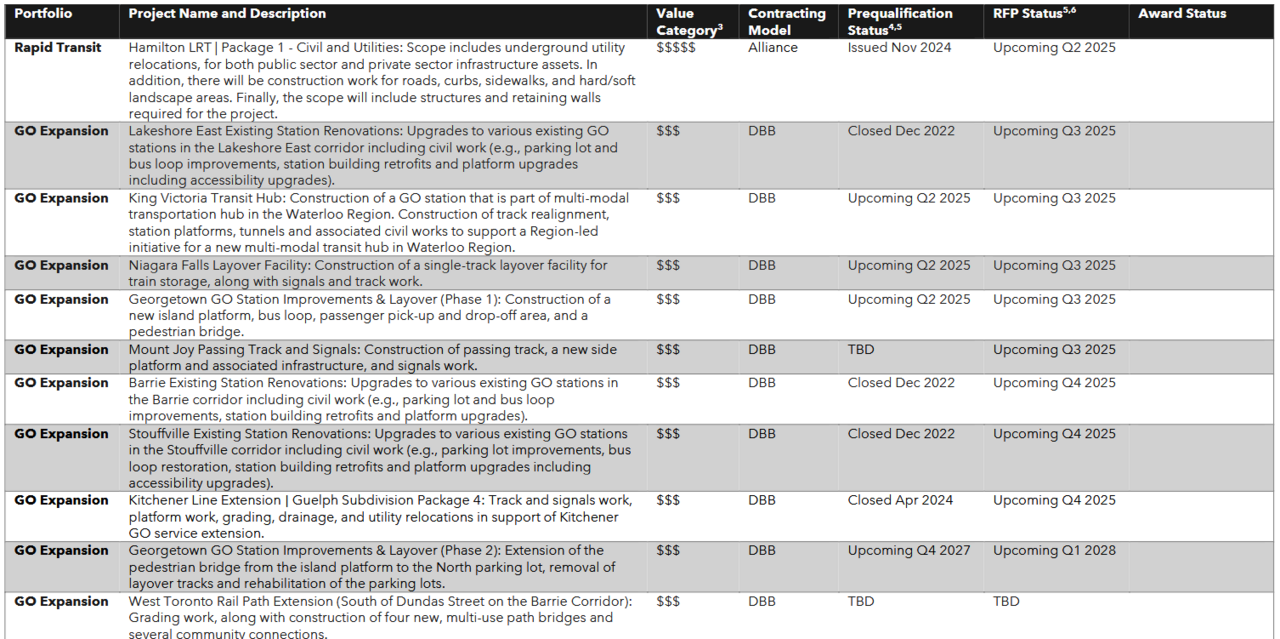 Even simpler packages such as the signalling and layover track at Niagara Falls - Prequal Q2 2025, RFP Q3 2025 - meaning no shovels in the ground this year