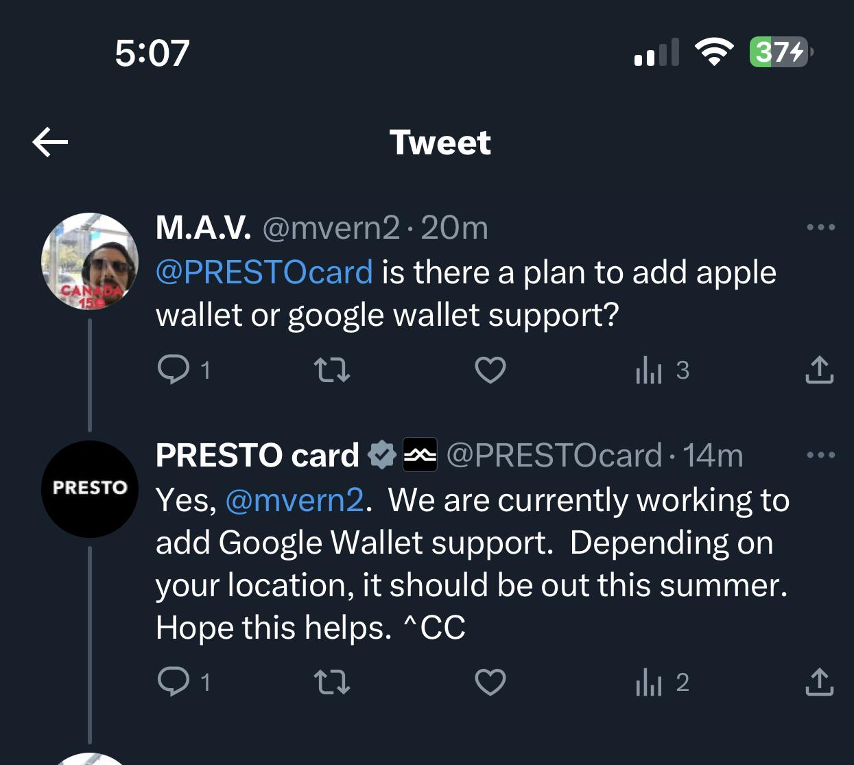 I guess from this google wallet is getting the virtual presto card sooner then Apple wallet View attachment 491556