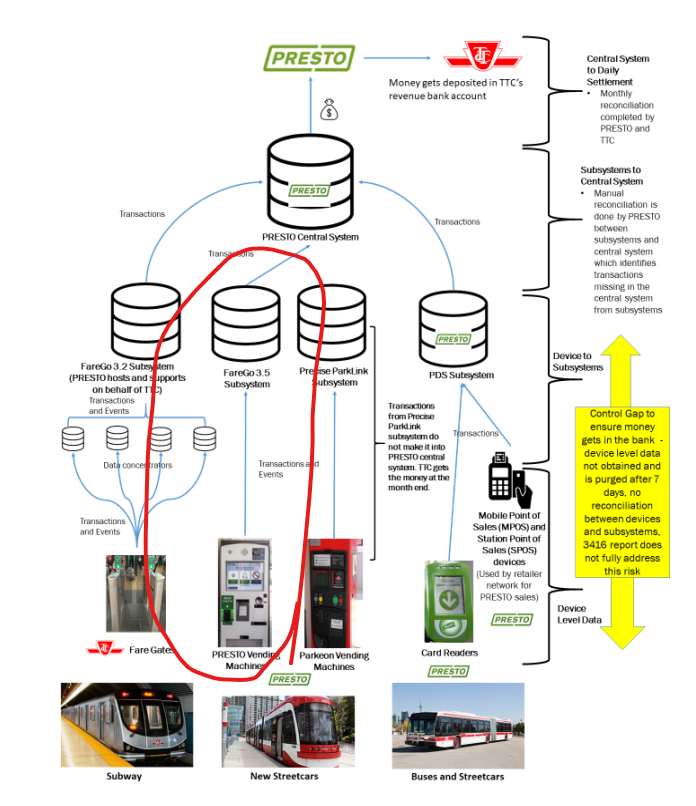 Kind of like this, but only Presto card transactions get passed through to the central system. Ottawa's system has to interoperate with STO's which complicates development. Support might come at a later date, but the TTC really wants virtual Presto cards and open payment this quarter so something has to give.How does Ottawa use Presto with a different back end?