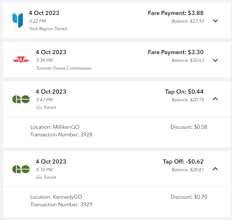$22.93 if I take the 71 to Unionville, 56 to Bramalea and then the 30