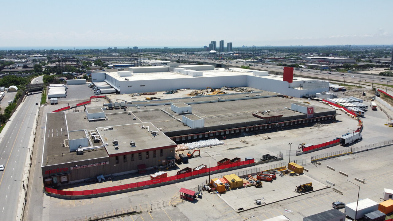 Great photos of expanded use of an existing and formerly underutilized (by todays standards) brownfield site. Metro spent over $400 mil to add 700,000 plus sq ft of highly automated storage for fresh and frozen goods. This after adding a 200,000 sq ft plus warehouse to their existing site on the West Mall (formerly the Dominion Stores distribution center), which is located on the western side of the 427, You are seeing more redevelopment in Etobicoke of existing sites, as packages of land can be put together, due to demand for location and the high values of real estate - it only makes sense to optimize the possibly returns out of the property. Plus you are within minutes of several major highway networks, not to mention an underutilized railway.