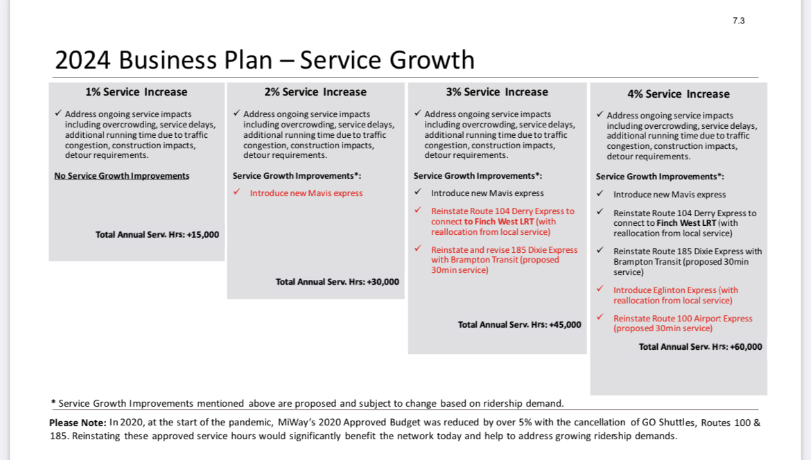 - Some proposed 2024 service improvements are listed in slide 16, subject to approval of 4% service growth by city council as part of the 2024 budget.