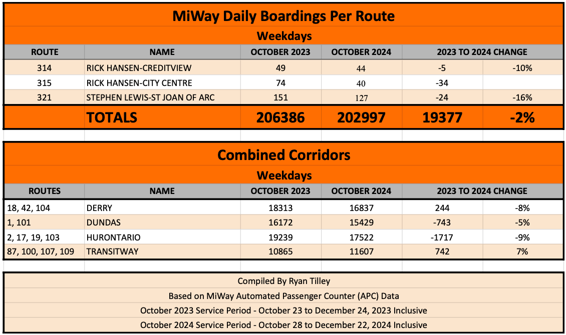 Hurontario ridership is down due to the LRT mess and unreliable quality of service that some riders are using other routes to deal with the mess. What is not factor in is BT 502 as it took the lion share of 17 with some miWay riders using it as it has better quality of service than the 17 as well the 103,