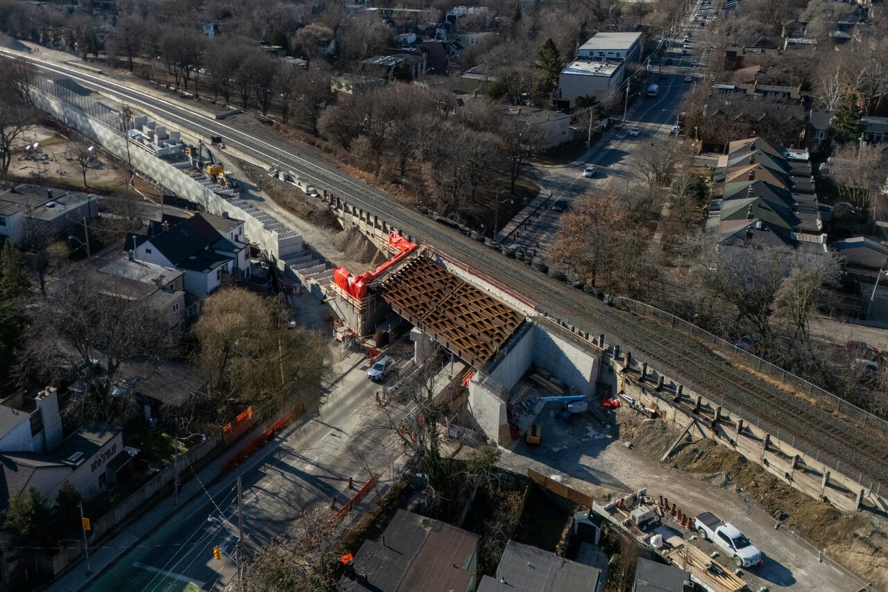 I believe they don't technically need to fit the OL tracks and the portal into the existing corridor at Gerrard, as they've expropriated part of the former No Frills site for the portal (which is why the No Frills had to close). The station itself will be on a new bridge next to the existing GO bridge.They are about a year behind schedule on these bridges. I’m assuming it’s several years of prep work (that is behind schedule as the third track was supposed to be laid and operational by autumn 2024) but once that’s done the bridges go up in a blink.