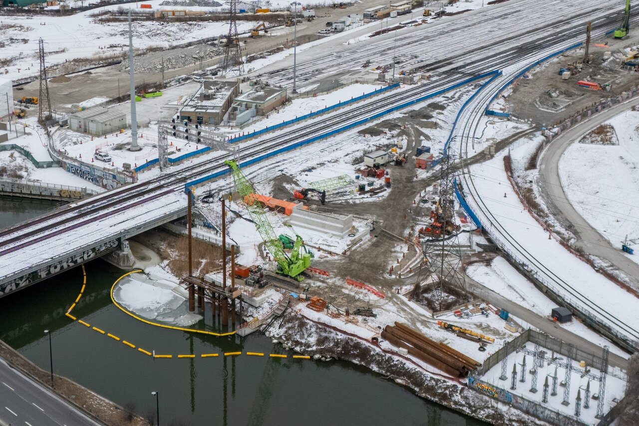 And the lower Don Valley bridge. I believe the steel structure is the temporary bridge trestle mentioned in this Corktown presentation document from November.