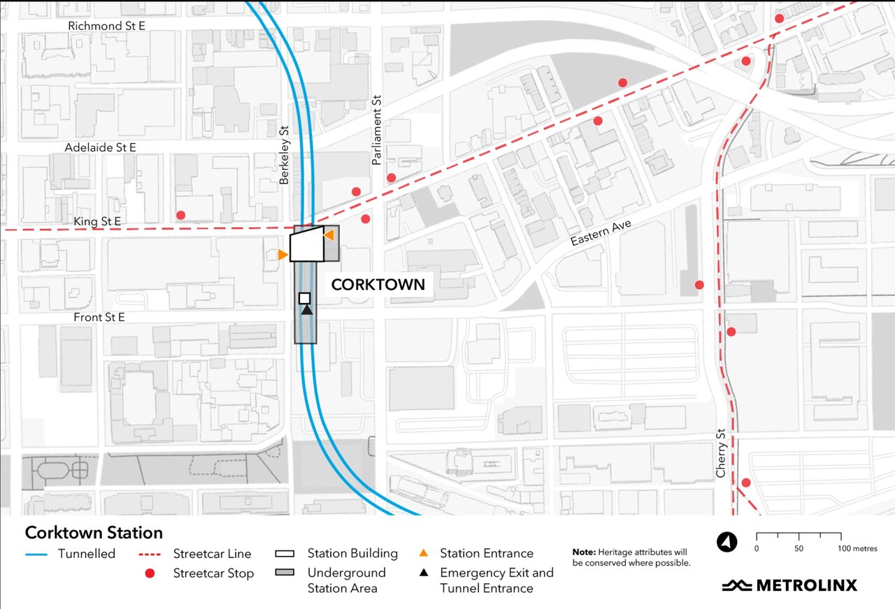 You're correct. Corktown, among many others, will be excavated where the station box will sit.