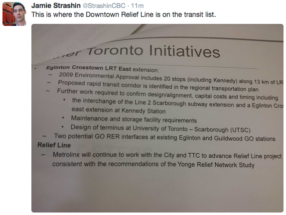 Having it in the slide deck at all is a recognition that it's on the table. I'd interpret the language as meaning "The Metrolinx Study, and not the City Study, is all we recognize".