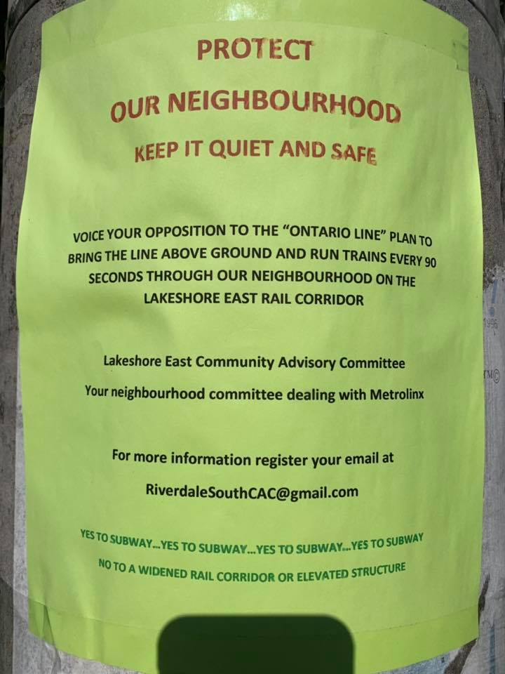 These posters are popping up near the surface portion of their route in the Riverdale/Toronto Danforth area of the route.