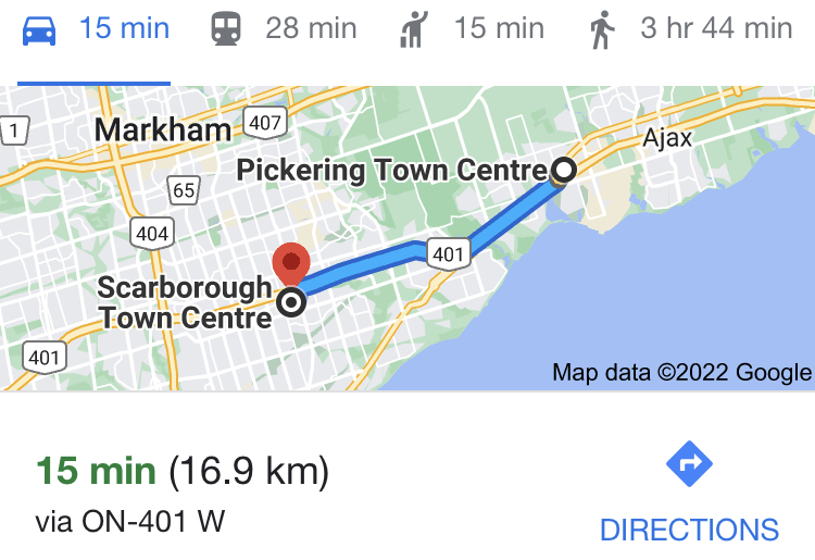 I stand corrected. You are right. It is 22km to 407 and Yonge. MCC would be 2.3 longer than that route. But Pickering at best would be 16.4 additional kms.