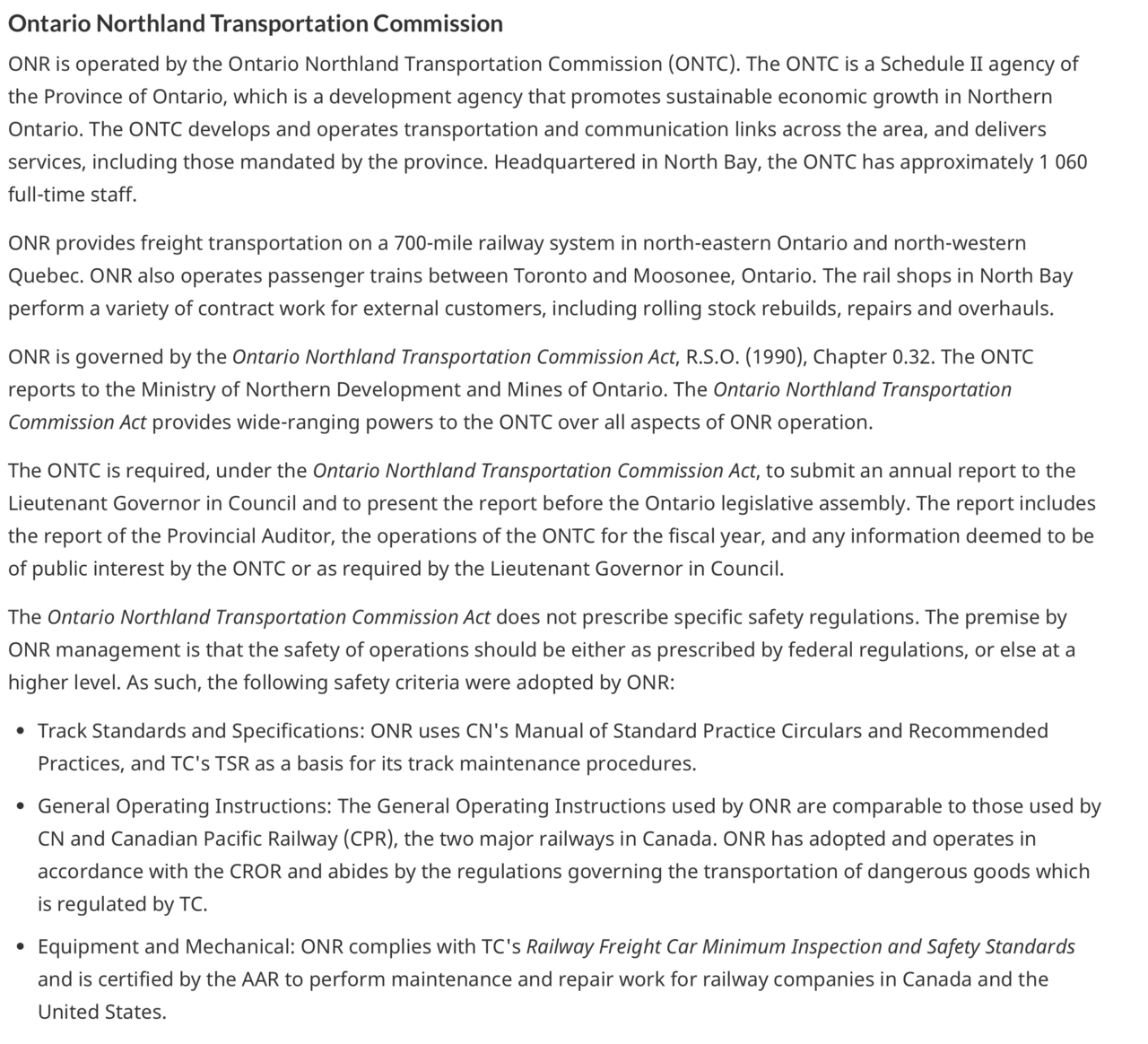 TSB Accident Investigation which describes ONTC's safety governance setup, and demonstrates that TC does at times intrude into ONTC matters.