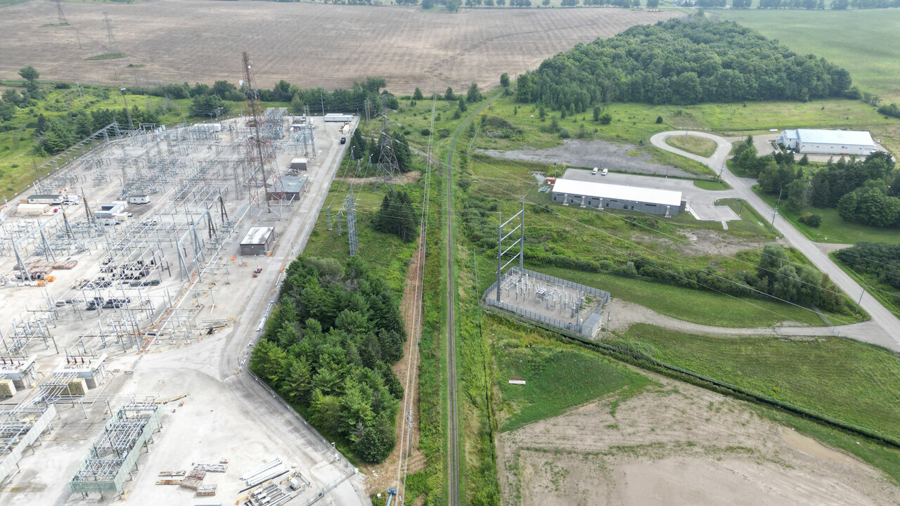 Two shots on tracks never owned by BCRY, but rather CP when the line went to Owen Sound. Here is where it crossed over County Road 11 looking West and looking East. A spur turned North into the Hydro Station.