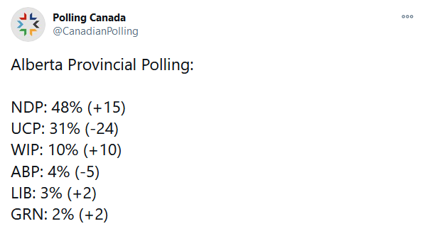 It makes me wonder if this could be the first time in Canadian history (I think?) that a provincial government went from the majority of one party, to the majority of another, back to the majority of the first, while having the same leader. Time will tell.Polling from Alberta............to make you go Hmmmmm; and lament that there will not be an Alberta election this year.
