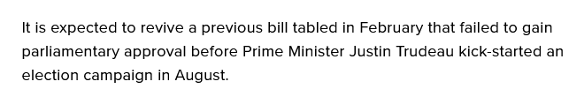 A previous bill the Liberals tabled in February failed to gain parliamentary approval before Prime Minister Justin Trudeau kickstarted an election campaign in August.globalnews.ca