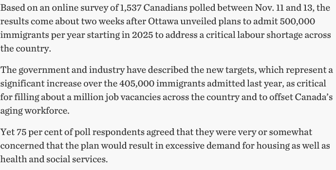 Signs that Canadians, and not minority, but a clear majority are losing enthusiasm for ever higher immigration targets, and they are linking those to housing prices.