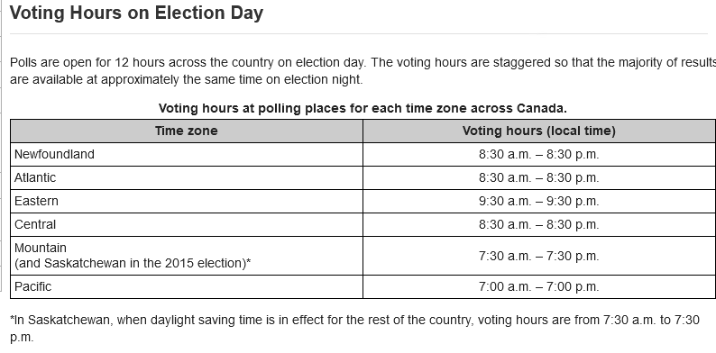 One would imagine that with a 3 day voting window, the polls could close at the same time nationally. The west coast moaning about their votes not mattering because the votes in the east were counted earlier was never really rational. If it makes them feel better, let BC report their results an hour earlier!