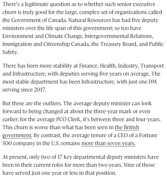 A column from the Globe looking at the very high churn rate of Federal Deputy Ministers in the Federal government:
