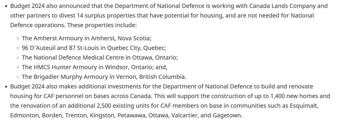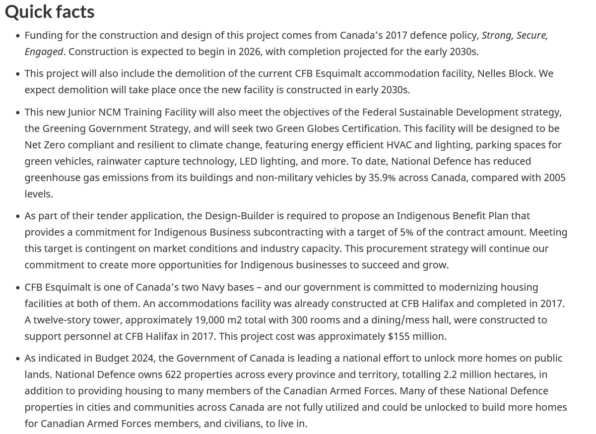 Presser out from the Feds today announcing a specific on-base project for military housing at Esquimalt.
