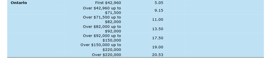 So, before factoring in credits/deductions, we can see that there is no change in the rate for any Ontarian making under $71,000 per year, which is above the