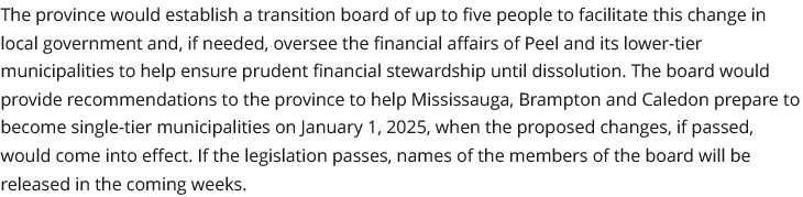 See this quote from the press release:Wouldn't be surprised if Doug chose to abolish all remaining county and regional governance, whether on behalf of amalgamations or on behalf of going-it-alones.