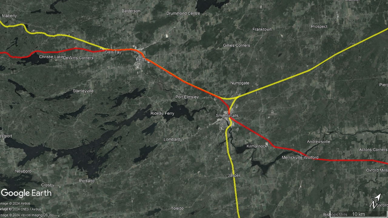 While the faster (near-)HSR possibilities are appealing, they will also be a lot more expensive, and the Feds might simply choke and stick with a 200 KPH solution. If so, bypassing Ottawa could well be the only way to meet the 4h10 mark. They could abandon that and say that all the money spent buys Toronto-Montreal trains that are still about 5 hours. Difficult choice, but I think it's a real one. We aren't privy to any discussions about use of non-VIA tracks held among the government, the proponents, and the railways that might influence the solution.