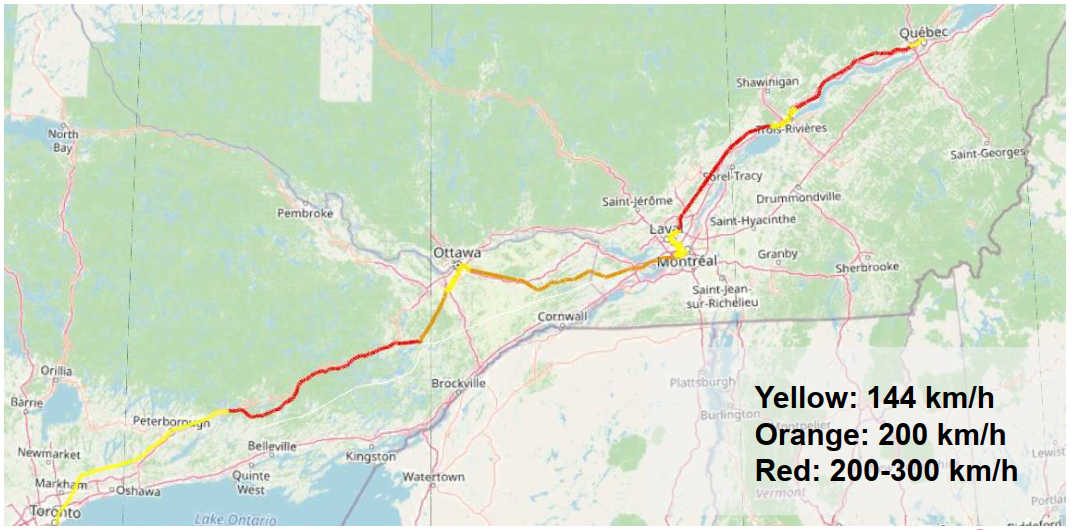 All the indications so far have been that it wouldn't be HSR across the full route, but in segments. The 3 hour benchmark for TOR-MTL also indicates it wouldn't be full HSR.