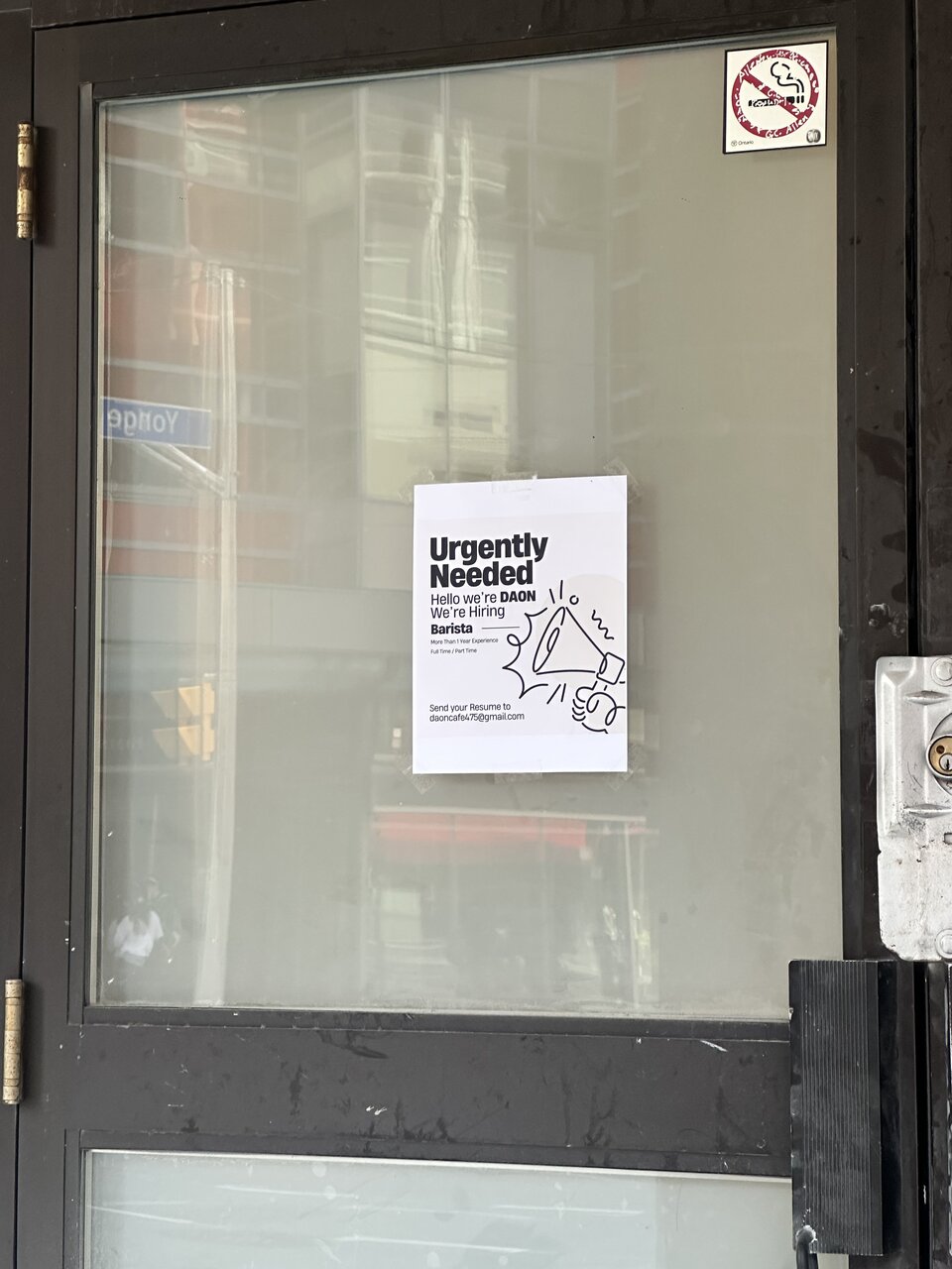 Walked past this today, going in at the ground floor of Courtyard Mariott at the corner of Yonge and Wood. Looks like it's a Japanese bakery/cafe called Daon. Although I don't see any info online about them. Based off the interior and the fact they were cleaning windows inside and out looks like they're almost ready to open.