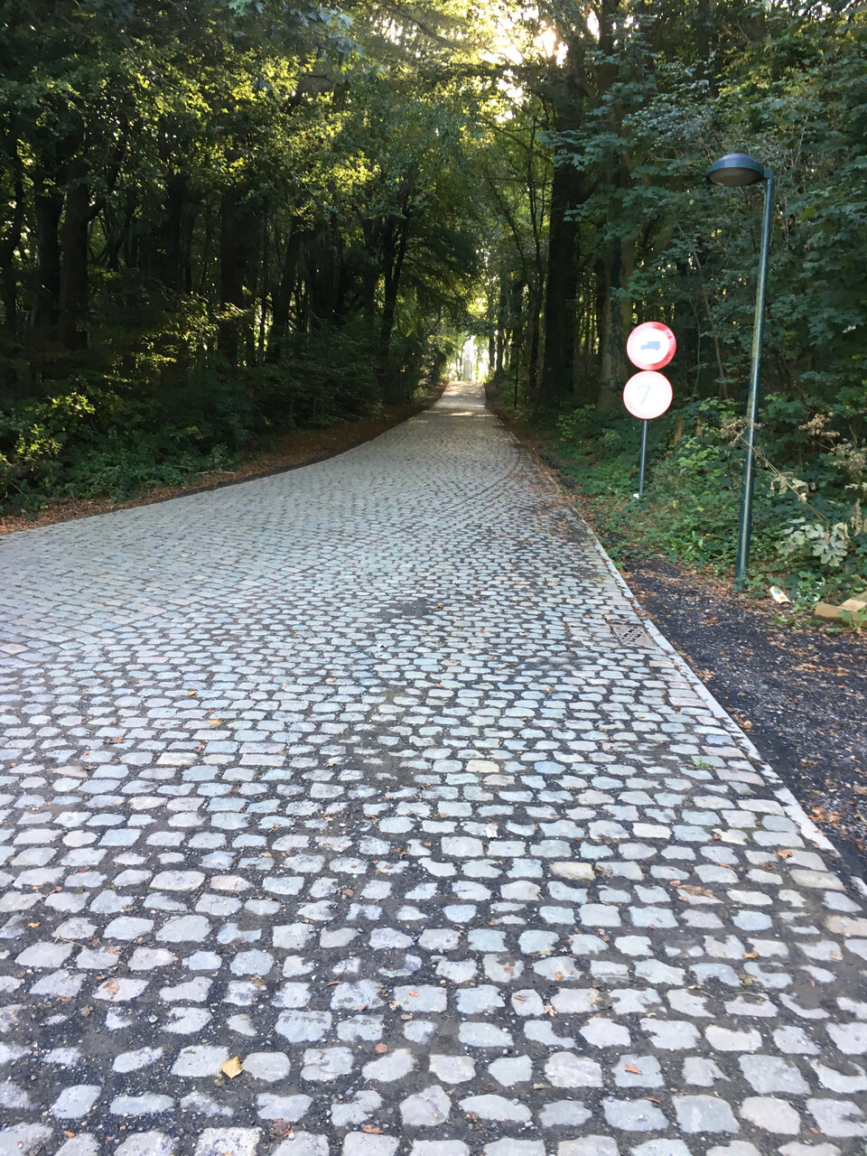 Here's a guy casually biking with a stone/brick road