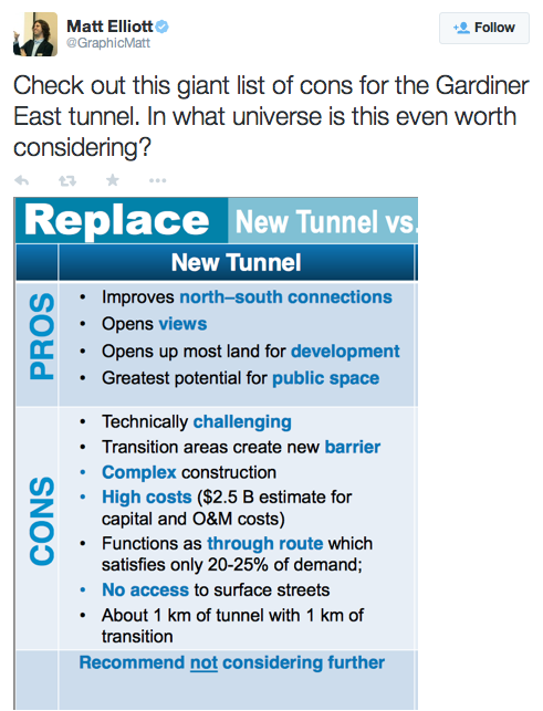 Haha. Karygiannis tunnel option. Toronto Eats Gardiner?