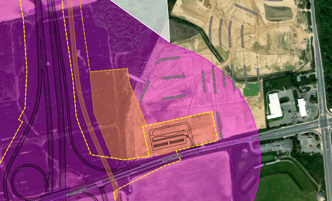 I'm only asking because this section right here where it's highlighted and intended to have a parking lot already has houses that are nearly finished being built. Is that purple/orange boundary significant or has it already been shifted after this arcgis site was published?
