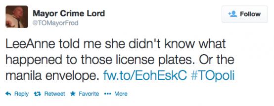 Councillor Doug Ford said he does not know who removed the plates from the SUV, and that he hasn’t been able to reach his brother since reports about the arrest first surfaced Wednesday. “He is not answering his phone,” he said.