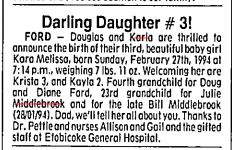 Found a birth notice for Kara in The Star, March 5 1994, page B8. Nothing in their marriage, at least not from TPL's TorStar digital archives.