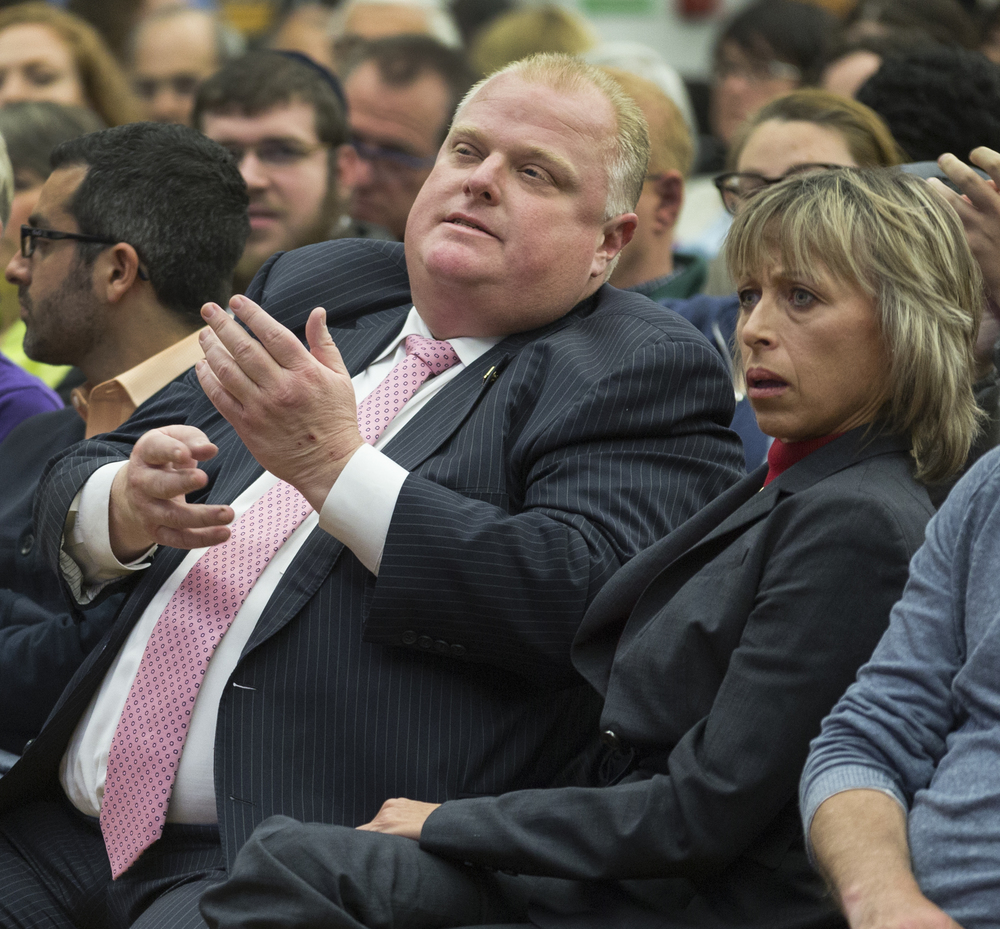 TORONTO, ONT. (05/10/14) - Mayor Rob Ford and his wife Renata Ford react to Doug Ford's speech the mayoral debate on October 5, 2014.
