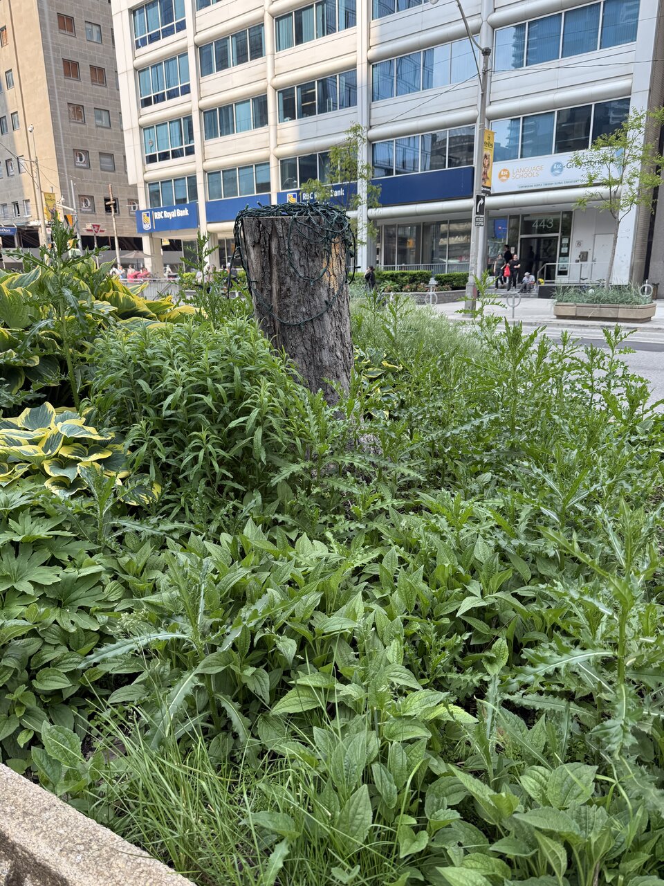 One reason we have so many poles like this is that the City and utilities HATE sharing 'their poles'. the metal one with the button is a City traffic light pole, the concrete is probably Hydro.