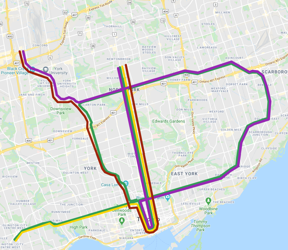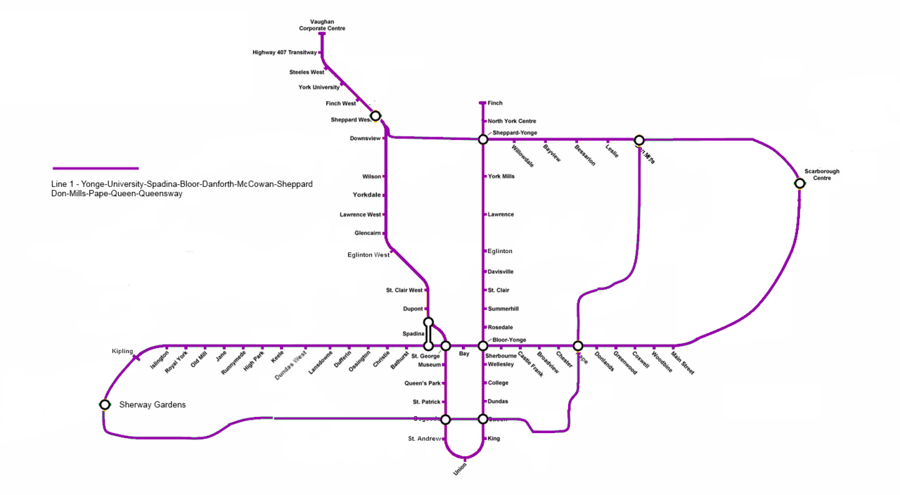 You forgot to add the DRL and its extension to Sherway to meet up with Line 2.