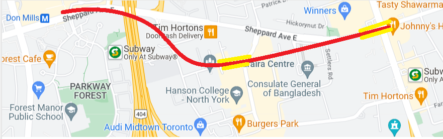 If the extension happens, I suspect it will be Victoria Park, Warden, Kennedy, McCowan. And if this government builds it, it will almost certainly climb out of the ground in between Yorkland and Victoria Park and be built on an elevated viaduct.