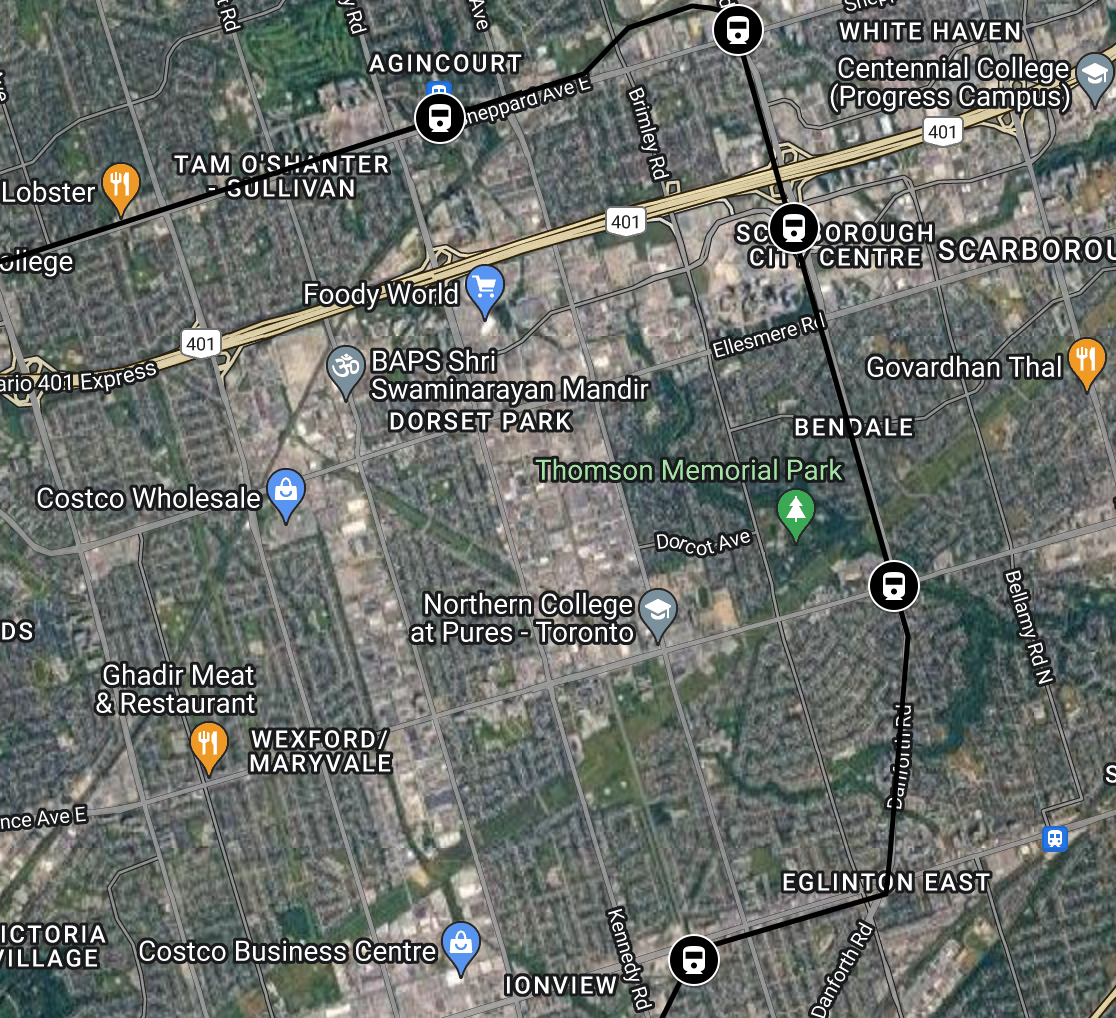 i already addressed this before i saw your post, but those pockets you describe are the only place they can justify building stations. Line 4 would be more successful as an express line, eliminating the three stations in between Yonge and Don Mills and routing all buses to those major hubs. bus routes already connect to Bayview and Leslie yet they still attract very lower ridership. the station that attracts the highest ridership on Line 4 (Don Mills) is also the station where most buses are frequently routed to, which is not surprising.