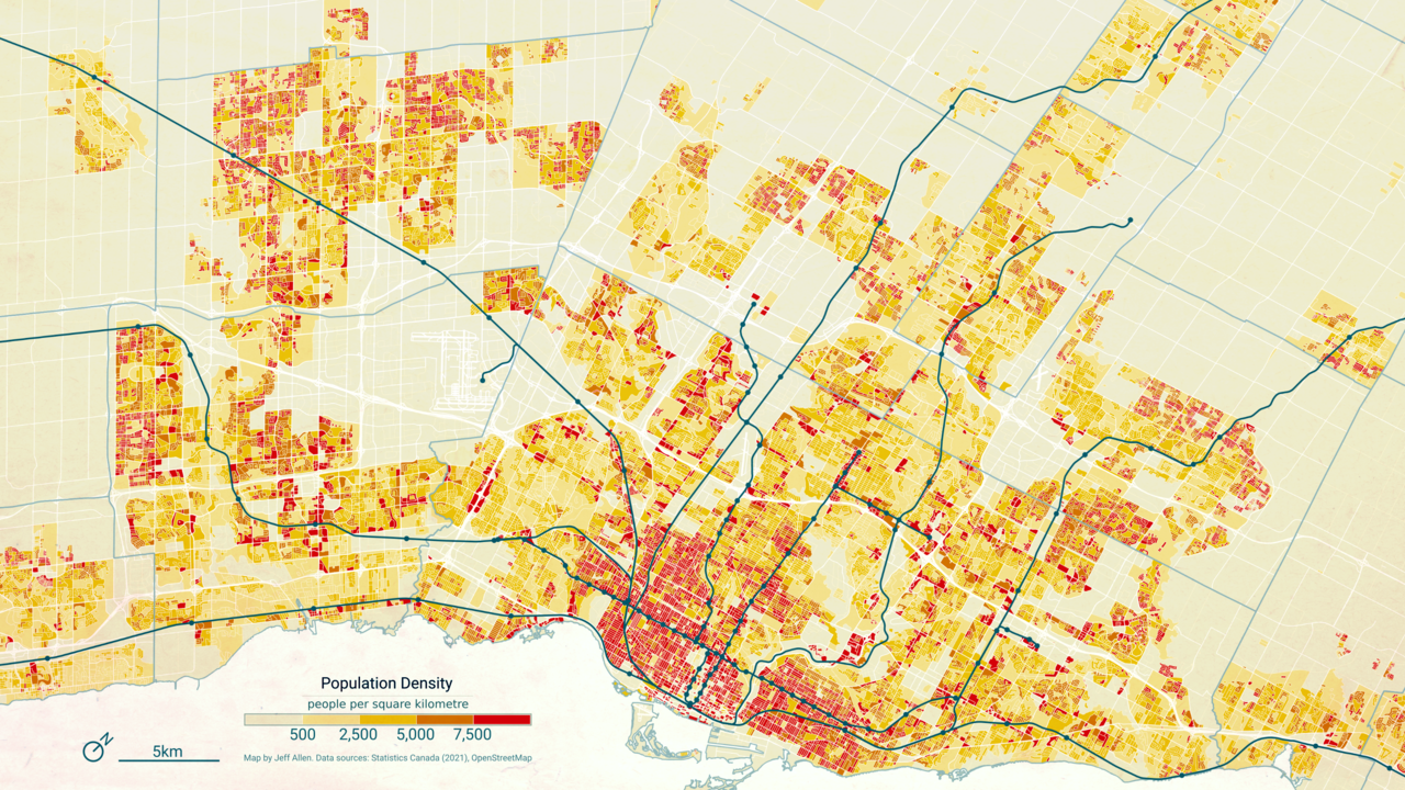 you see the part of the map where it's red in every direction? that's the only place where subways/metros could theoretically justify being built. why? because it actually has the population density required to not be subsidized in perpetuity. an area needs at minimum a 10,000 per square km population density to justify it economically. otherwise it just bleeds money in operational cost yearly. Line 4 will always be subsidized no matter how far you extend it. the yellow belt will never have the population density to justify subways. you just want it or feel like you deserve it because you live in one of these suburban areas. GO can fill the suburban need if it's scaled properly like an S-Bahn. if the GO train is too expensive then talk to your MP about fare integration, which should happen anyways in my opinion.