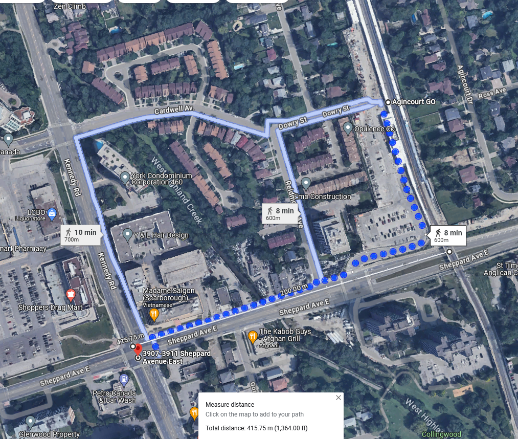 Kennedy to Agincourt GO is 300m, meanwhile a full length subway platform is 150m. I really hope they don't just plop the station east of Kennedy, and require people to walk 150m to reach Agincourt.
