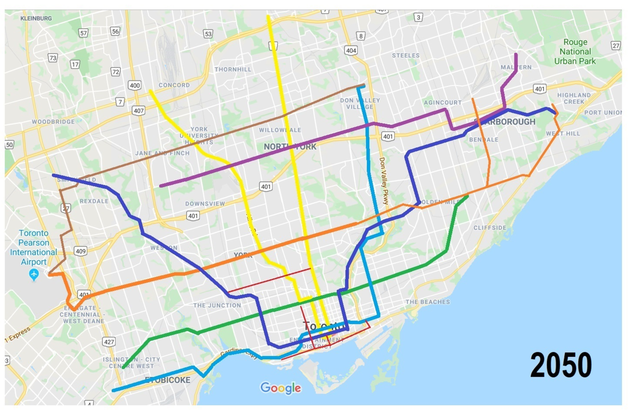 - If you are at Eglinton, a blue line train will come to take you downtown (and eventually heads off to Kipling*), followed 2 minutes later with a green line train that takes you downtown (and eventually heads off to Kennedy*). If you are heading either West* or East* you will most likely make the transfer at Y-B (just as today) instead of riding all the way down through the U.