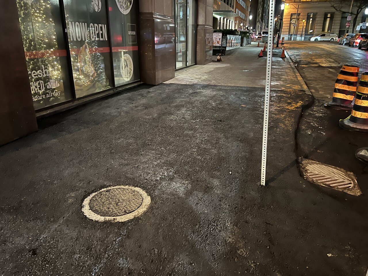 Yes, I saw it! I think the asphalt is temporary as pedestrians are having to walk there because they are now excavating the SOUTH side. Then I think they will fix the whole Wellington/Scott intersection at one time - of course 'winter' may arrive and all bets will be off!! Not sure if it's a particular Hydro problem, rather a general contractor and City incompetence one.....
