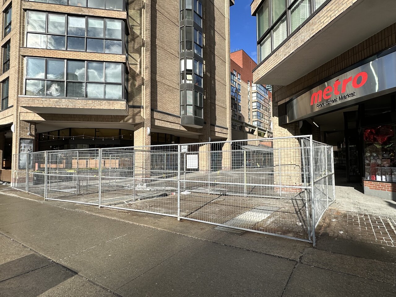 Yes, the fencing seems to be over the (building owned) transformer vaults for 80 Front etc. Getting these grates repaired is probably a BUILDING responsibility but they need to synchronise with Toronto Hydro and, based on work of a similar nature at our building, this takes ages as Hydro has a long list of this kind of work. The Fixer is good but I doubt that even Jack can get them moved up the Hydro priority list. and they MAY be waiting for warmer weather too,