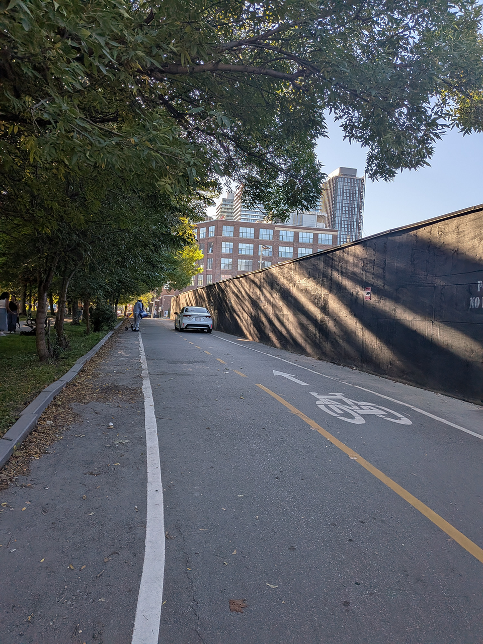 As if to underscore the pointlessness of these stickers, on Friday just after 5pm we saw a first: a car intentionally drove through the cycling/pedestrian path in Parliament Square Park. It entered off Parliament Street, drove through the entire width of the park and exited on to the Esplanade. People using the bike path, including a father with his small child on a scooter, had to move aside. People waved at the driver to stop him, but he ignored them and drove through at a steady though not high speed.