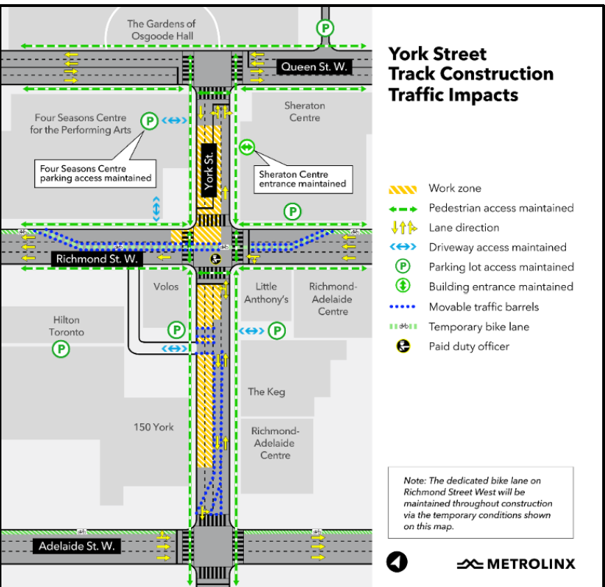 Just the original Queen and York intersection track in place