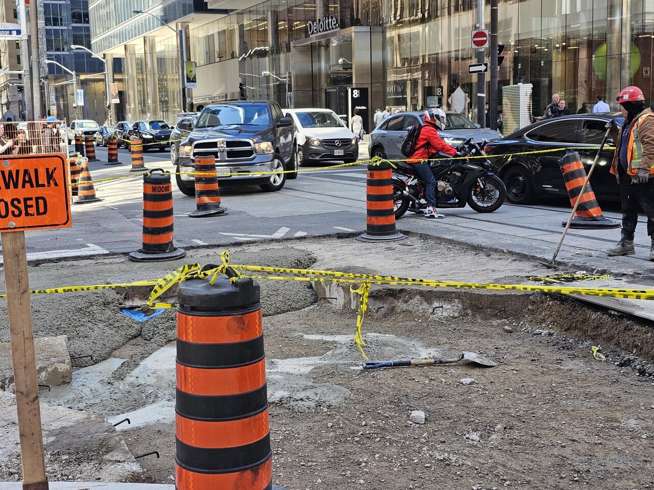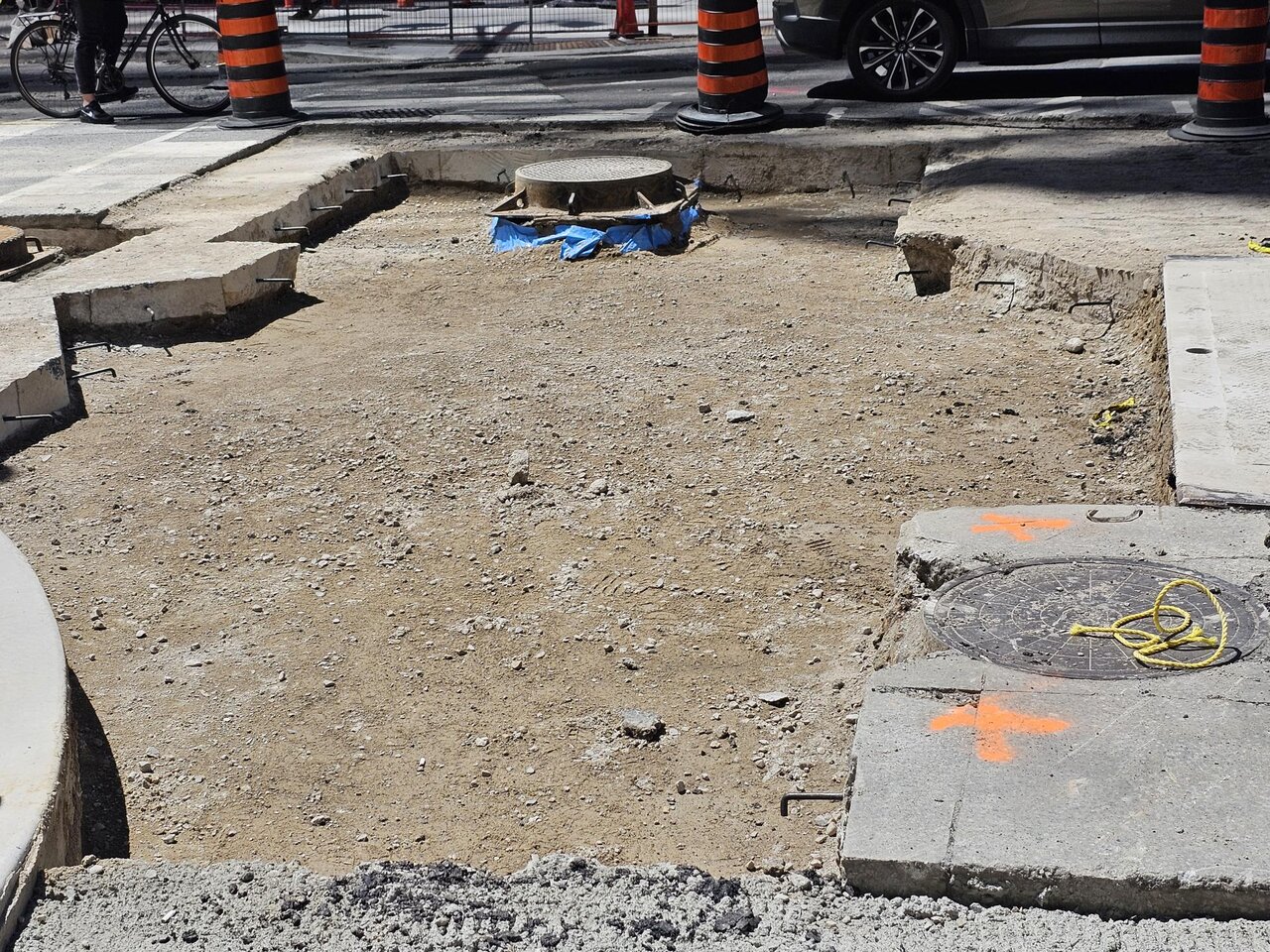 I'm not sure what's going on here, they're adding a 2nd lane to the existing streetcar track for the detour is the existing track all being replaced, and they're tearing out the old one where the twinning is extended?