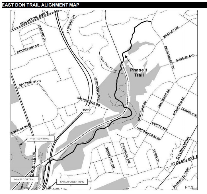 Surprising, because even in the latest pdfs from the East Don Trail site they are still showing the access road as the trail location