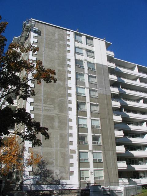 A number of low-rent highrises and low-rise rentals were partially or fully defaced by layer of overclad metal in the 1970s or 1980s. Here's a random example: 3400 Keele Street. 1 Canyon Avenue is particuarly bad.